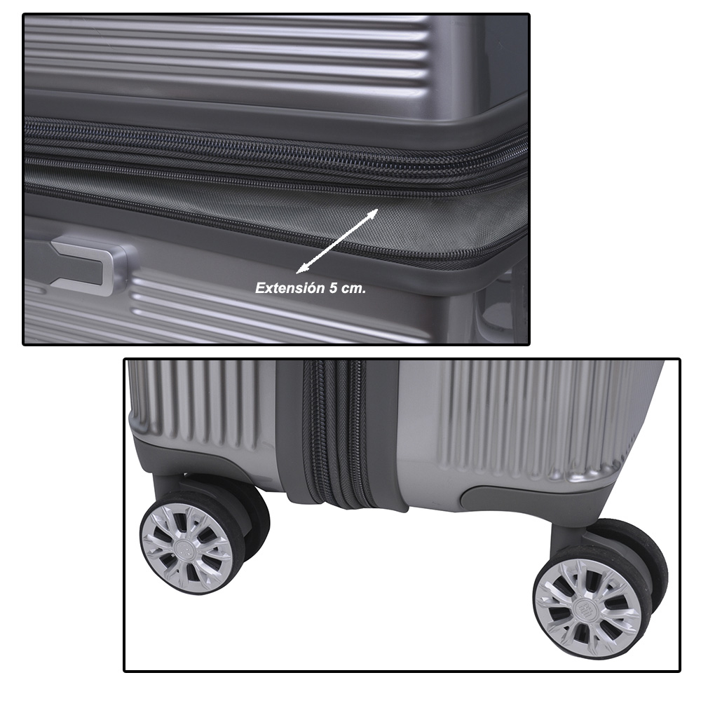 Observaciones- 8 ruedas - Extensible - Posee forrería - Bolsillo interno - Cremalleras y deslizadores resistentes - Material resistente - Carro interno - candado combinacion incorporado