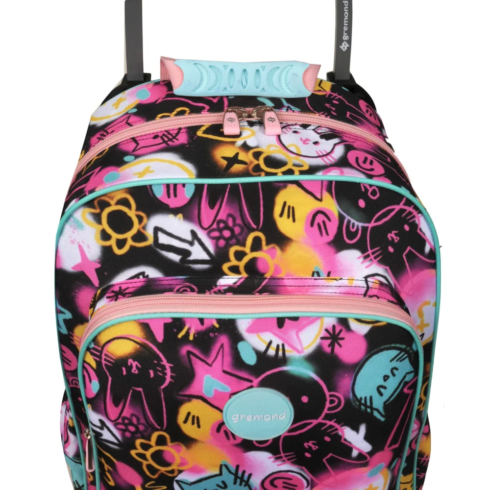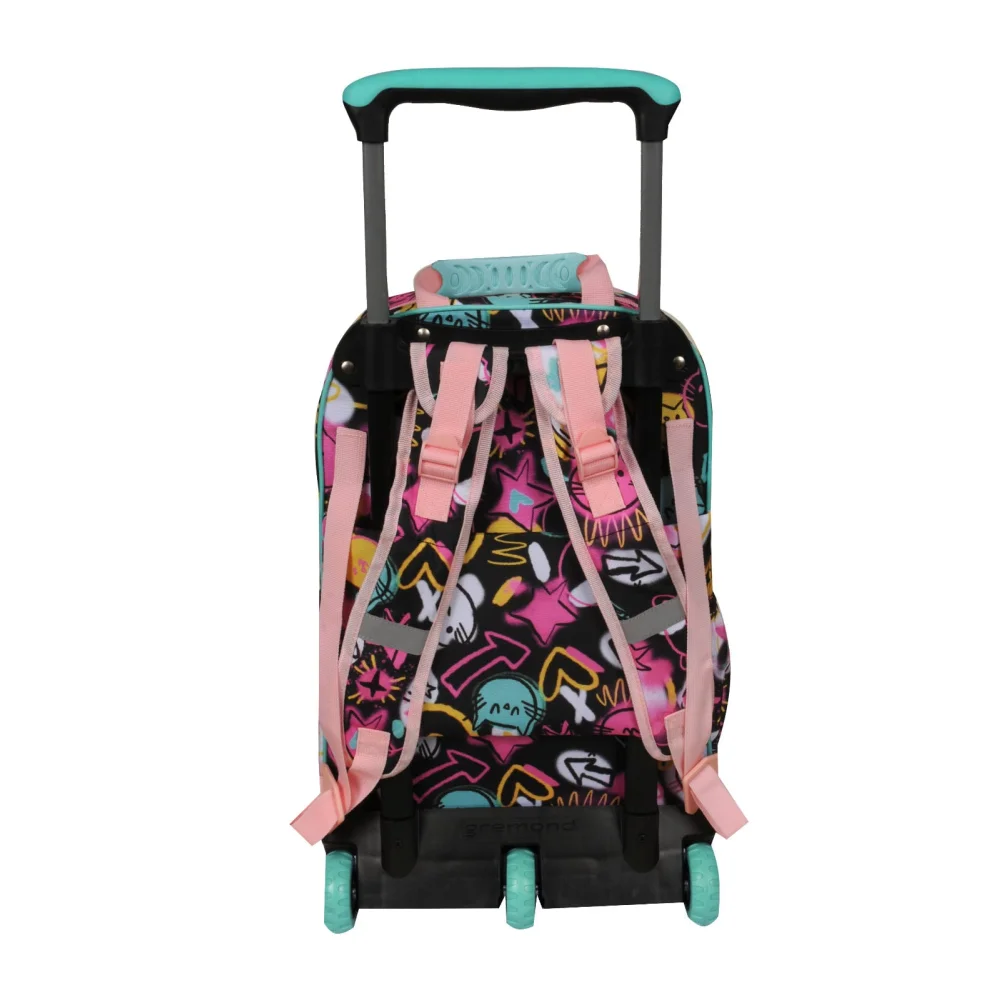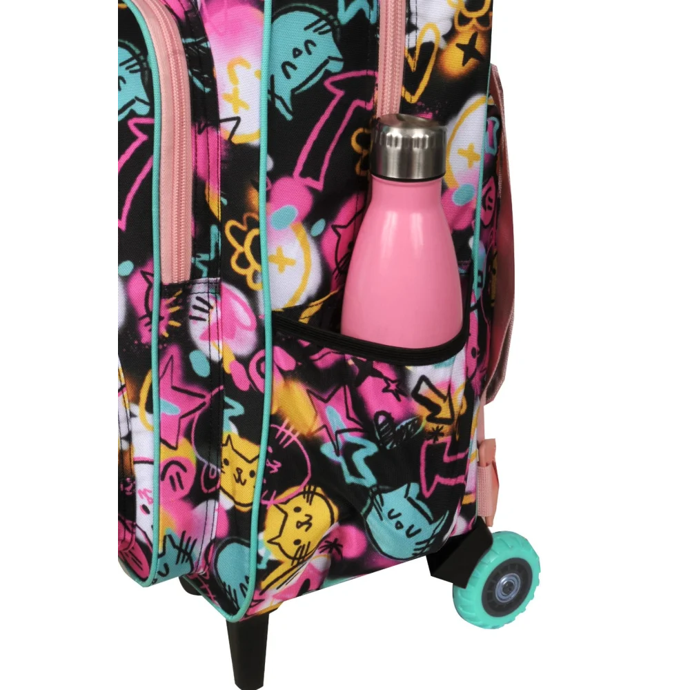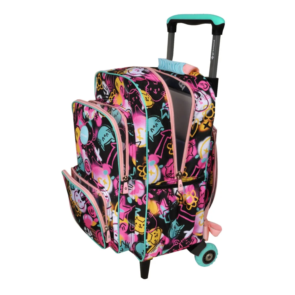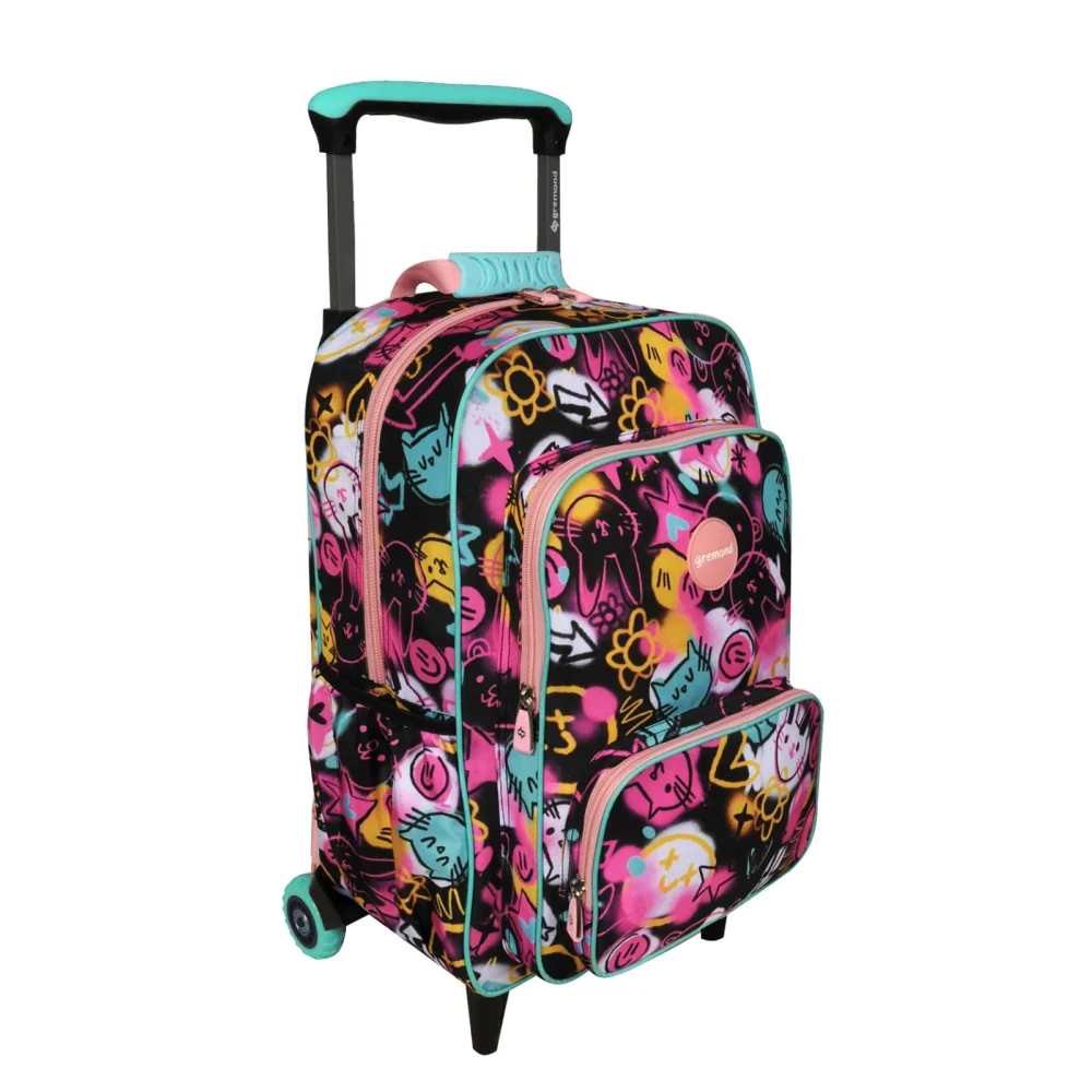 Observaciones3 ruedas tractor - Amplio compartimiento principal - 2 bolsillos al frente con organizadores - Bolsillos laterales - Incluye tiras de espalda - Cremalleras y deslizadores resistentes - Textil resistente